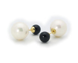 Fronay Double Sided Faux Black Pearl Tribal Earrings - 925 Sterling Silver