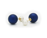 Fronay LIATURB Faux Blue White Pearls Double Sided Tribal Earrings - 925 Sterling Silver