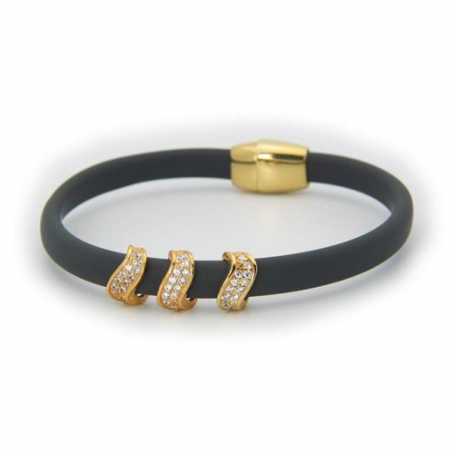 Fashion forward italian made bracelet featuring three tiers of cubic zirconia infused waves accentuated by a sophisticated magnetic clasp.