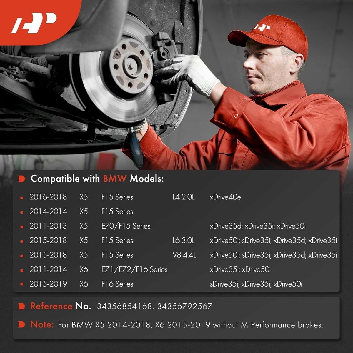 For BMW X5 2014-2018 and X6 2015-2019 fit the Model without M Performance brakes.