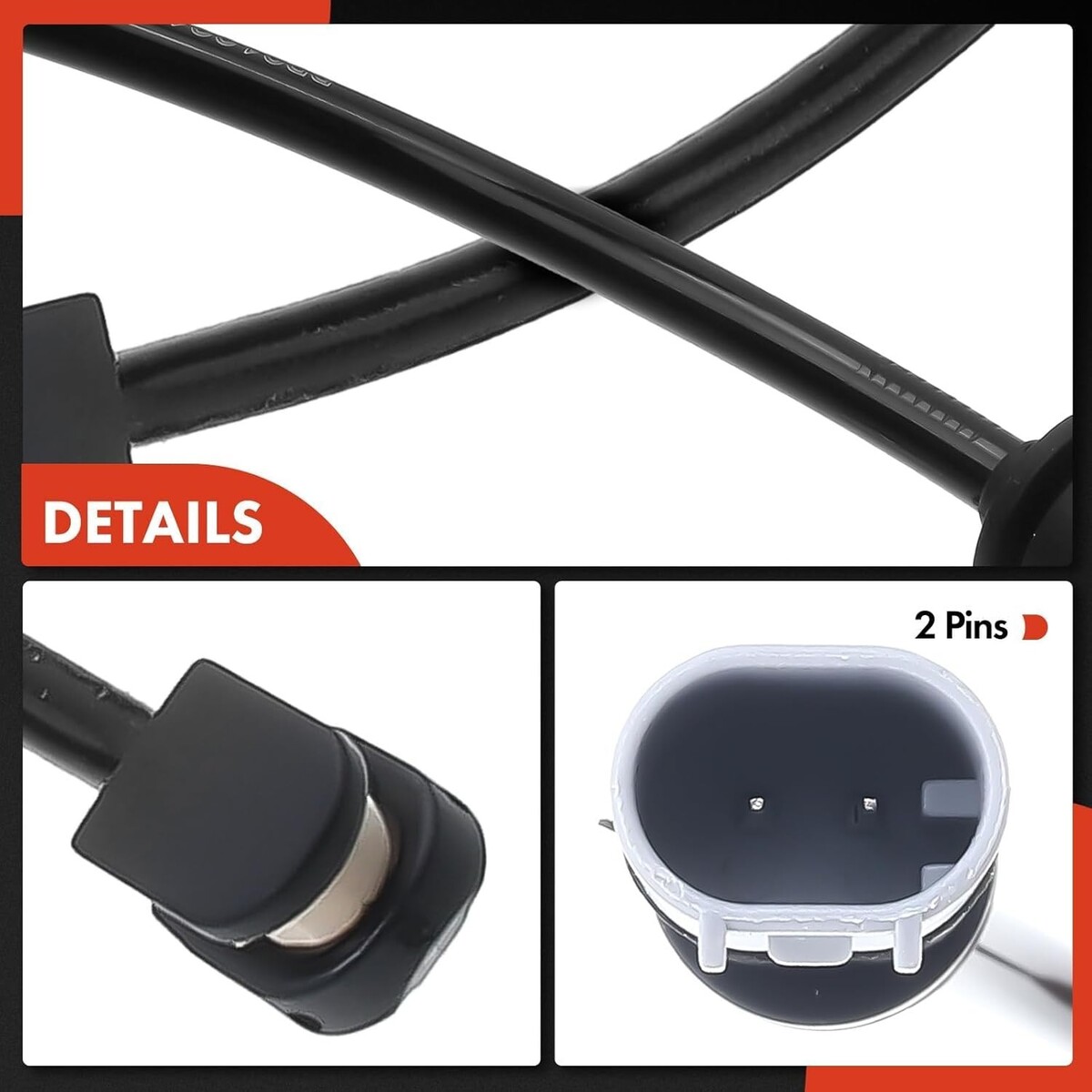 ? Mounting Location: Brake Caliper; ? Terminal Quantity: 2 Pins; ? Connector Shape: Oval; ? Length: 983+15/0 mm (Front), 1020+20/0 mm (Rear); ? Connector Length: 14.20.5 mm; ? Connector Width: 10.20.5 mm