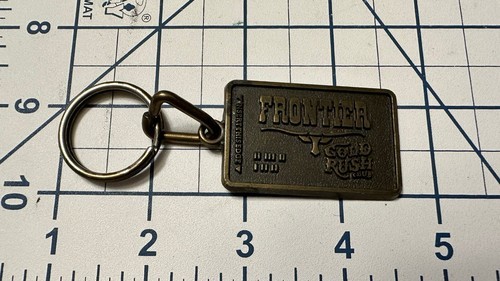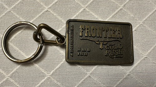 Has wear on the key ring. The vintage key chain features the logo of the Frontier Hotel Casino's Gold Rush Club, recalling the era of the Gold Rush in a casino setting. Crafted from brass, the key chain serves as a collectible item with a theme that highlights the casino's historical ties to the frontier spirit. Made in the United States, this key chain offers a glimpse into the past of one of the iconic casinos in American history.