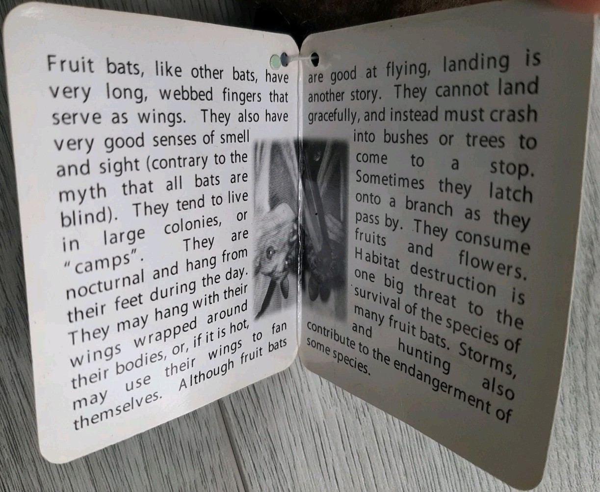 - Fruit Bat Realistic Stuffed Animal Plush Toy Educational Gift 31.5" With Tag