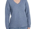 - Frye Womens Sweater Blue V-Neck Long Sleeves Cable Knit Patchwork Side Slits
