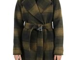 - Frye Womens Wrap Coat Green Multicolor Plaid Pockets Self-Tie Belt Heavyweight