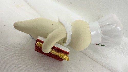 This Danbury Mint ornament features the beloved Pillsbury Doughboy character and comes with a glittery Christmas design. Made of ceramic and porcelain materials, this original piece is a must-have for any collector of Pillsbury Doughboy memorabilia. The ornament also includes a cookbook feature, perfect for displaying on a shelf or in a kitchen.