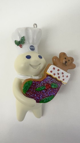 This collectible Danbury Mint ornament is a must-have for any Pillsbury Doughboy fan. Featuring a colorful design and glitter details, it's the perfect addition to your holiday decor. The teddy bear design is a fun and unique touch, making it a great gift for kids or collectors alike. Made from ceramic and porcelain materials, this original piece is sure to become a cherished part of your collection.