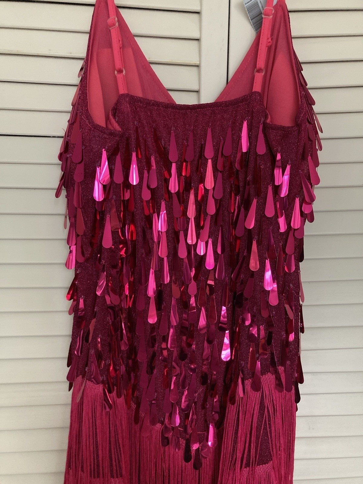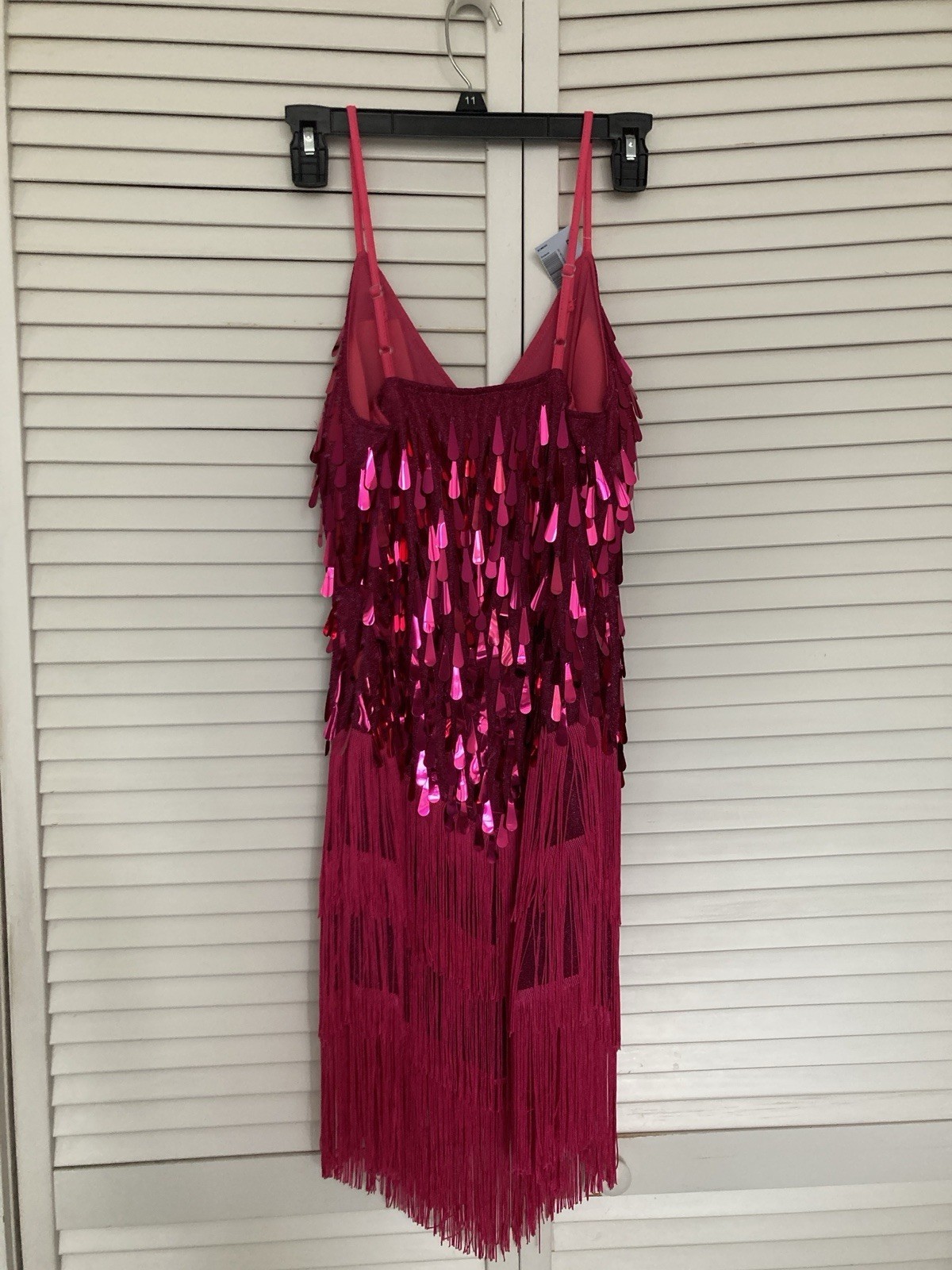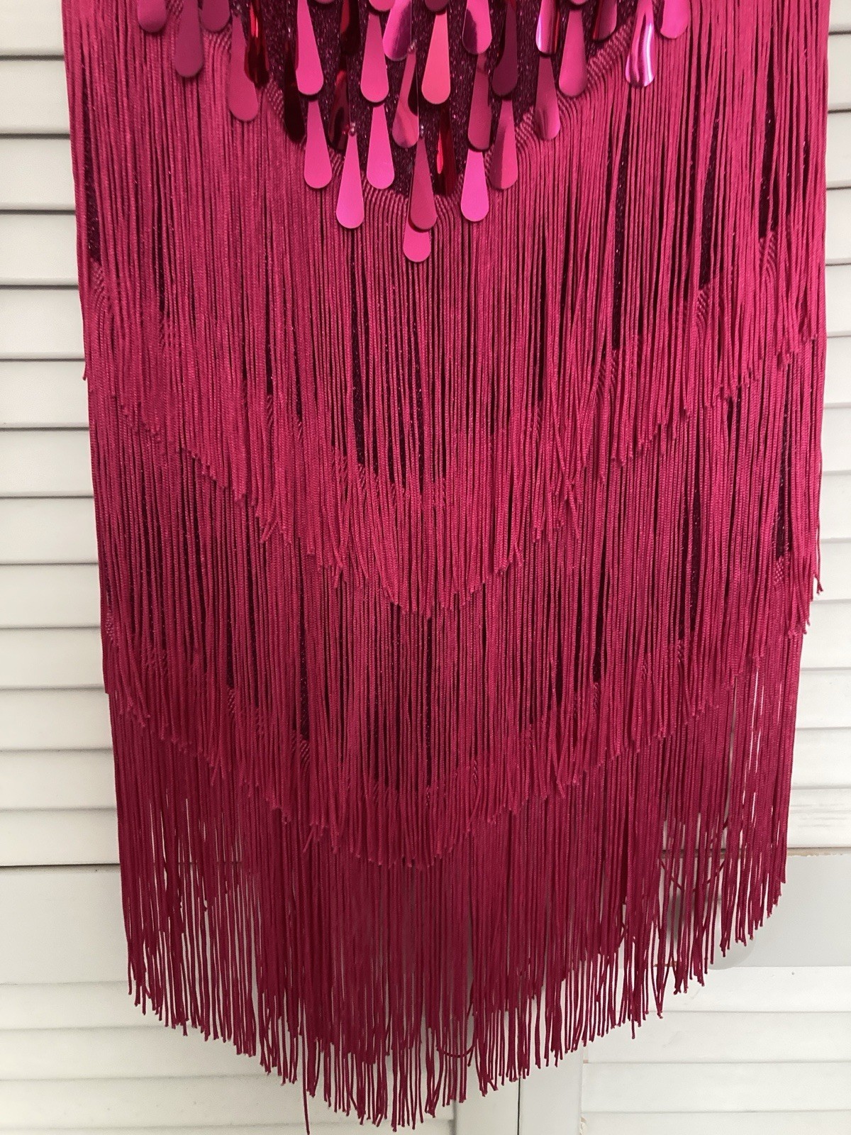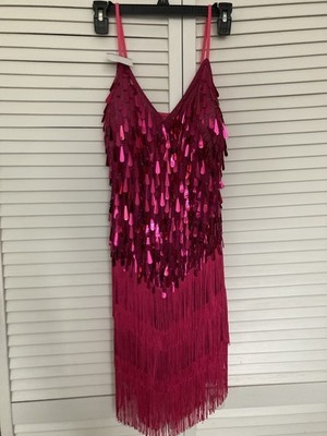 The "Fuchsia Flapper Fridged dress Small" is a vibrant and stylish dress designed for women. The dress features a bold fuchsia color, reminiscent of the 1920s flapper era with a modern twist. This trendy dress is perfect for various occasions, adding a pop of color to any wardrobe. Designed with a smaller size in mind, this dress is sure to fit and flatter the figure of a petite woman, making it a fashionable choice for those looking for a fun and eye-catching outfit.