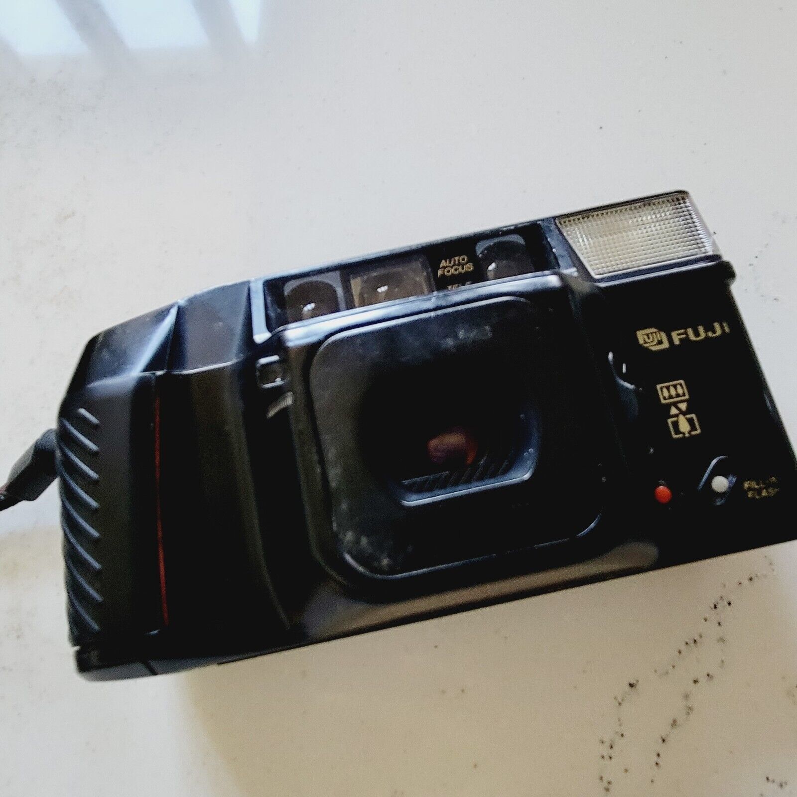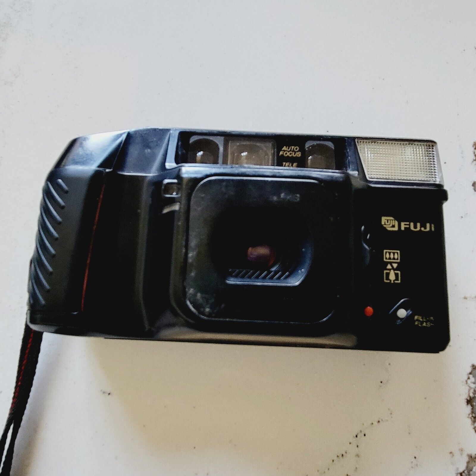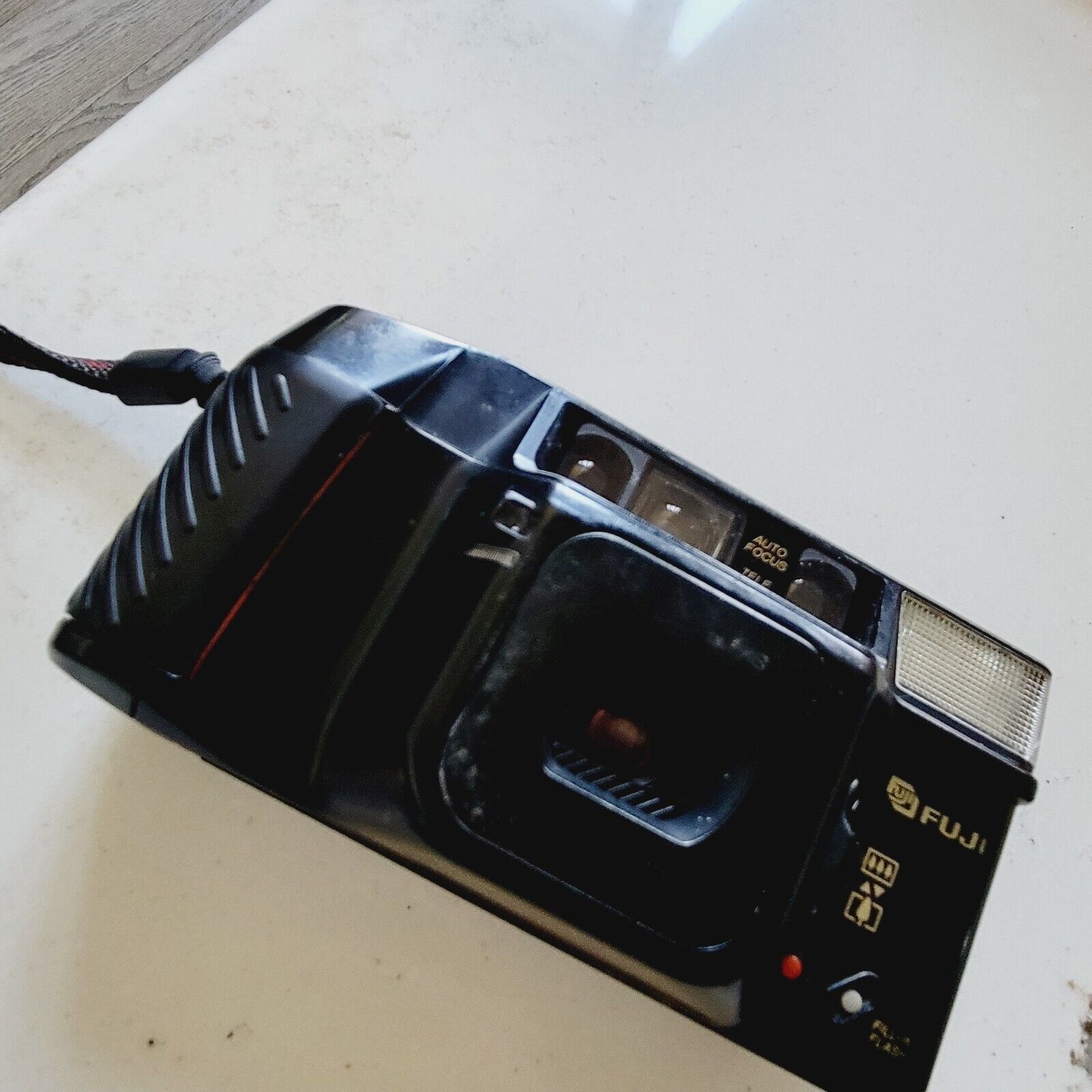 Fuji DL-400 Tele Point and Shoot Film Camera 35 mm 70 mm Black UNTESTED. PARTS ONLY / NOT WORKING