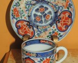- Fuki Choshun Cup Saucer Doucai underglaze blue w red green marked cobalt Meiji