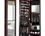 - Full Length Mirror Jewelry Cabinet with Ring Slots and Necklace Hooks-Dark Brown