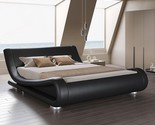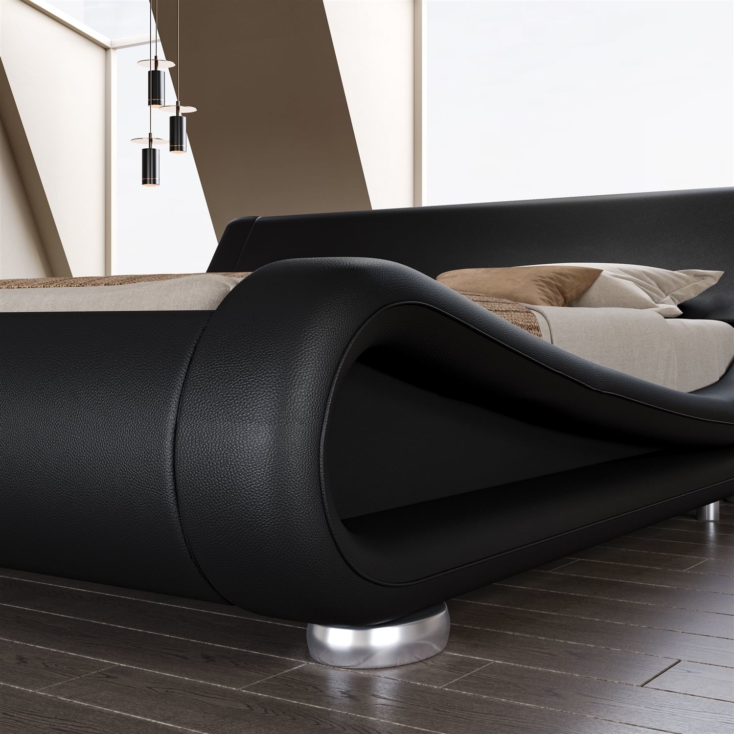 Full Modern Black Upholstered Platform Bed Frame with Sleigh Curved Headboard UNIQUE MODERN ERGONOMICS ADJUSTABLE STABLE SOLID EMBEDDED WELL-SLEEPING COMFORTABLE SOFT Size: Full Special Feature: Ergonomics, Fade Resistant, Squeak Resistant, Adjustable Color: Black Finish Type: Leather Included Components: Headboard, Slat Compatible With Mattress Size: Full Furniture Finish: Black Product Care Instructions: Wipe with Damp Cloth Assembly Required: Yes