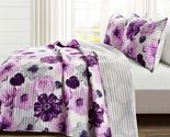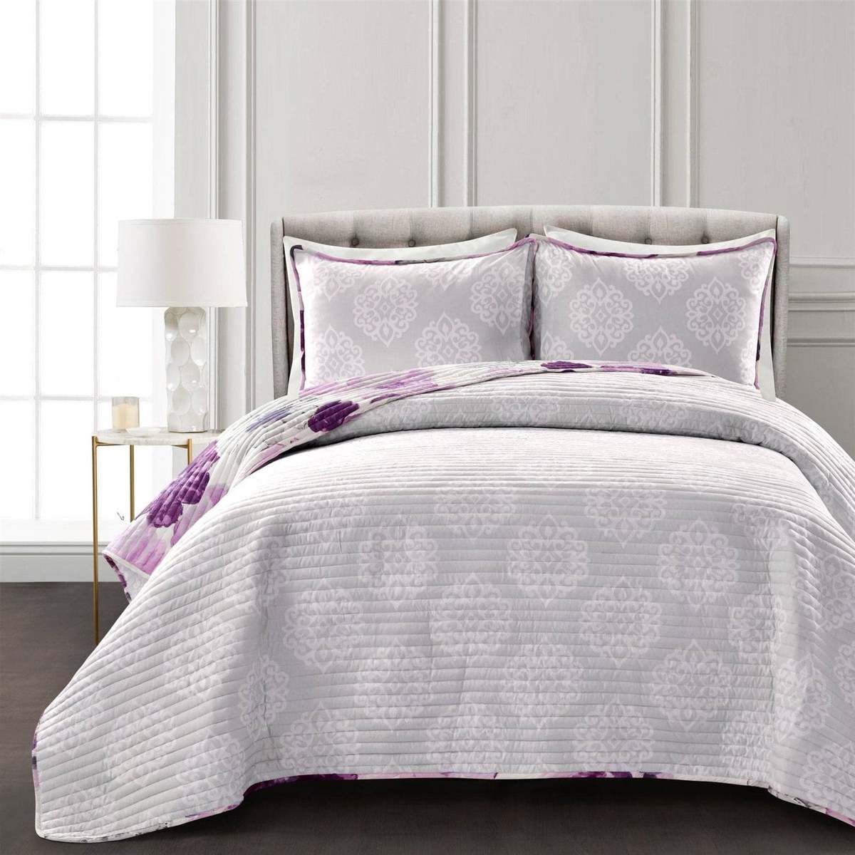 - Full/Queen Purple Grey Floral Lightweight Polyester Microfiber Quilt Set