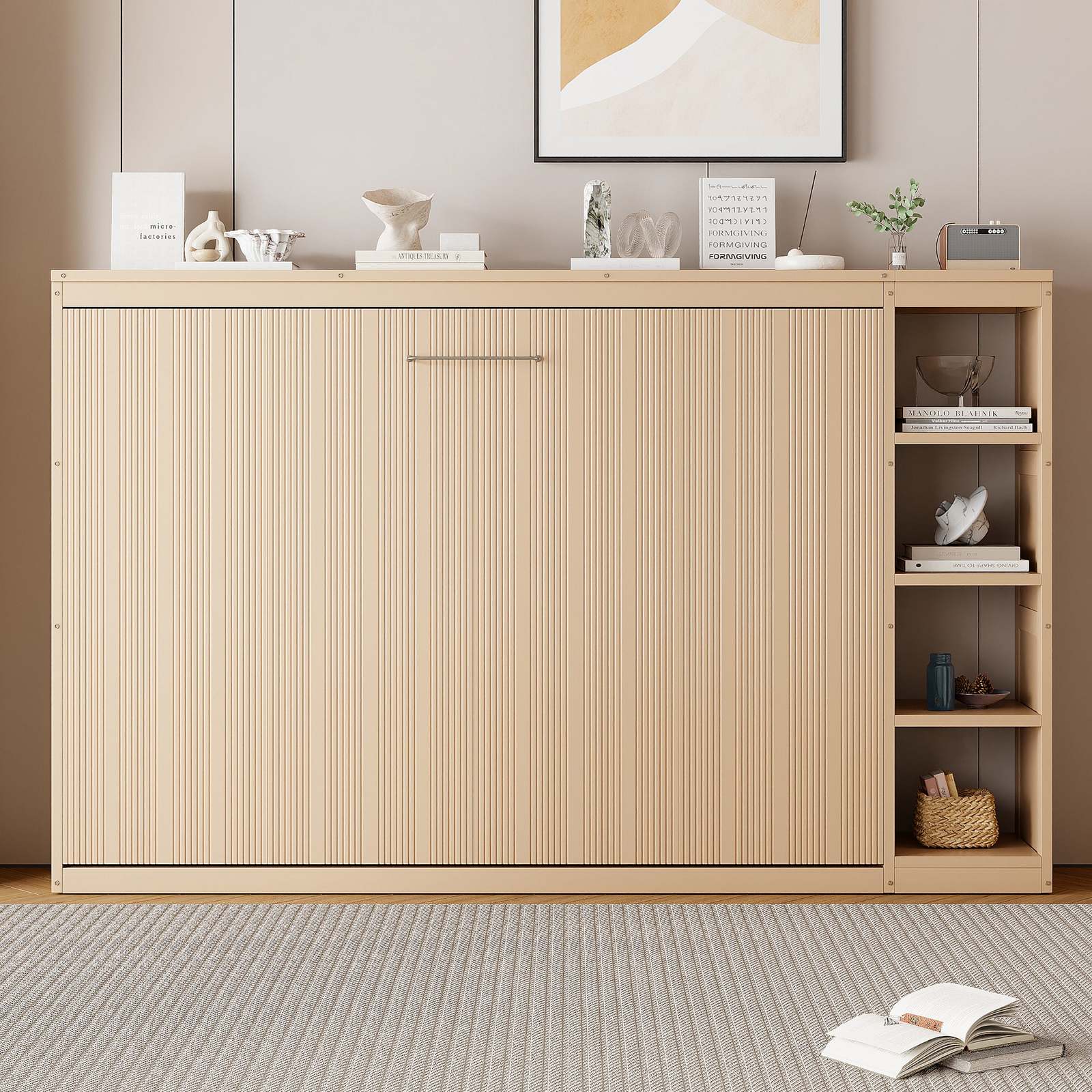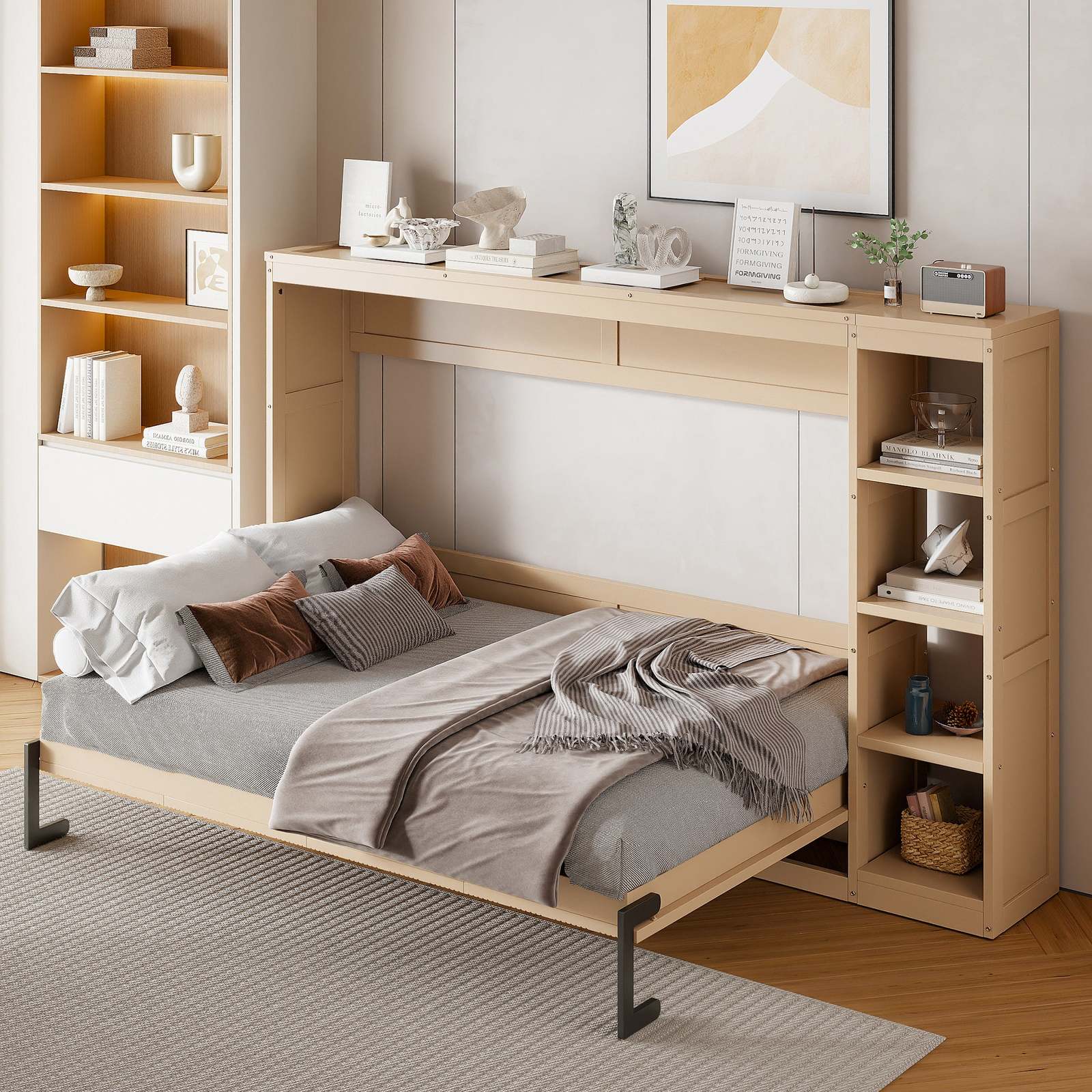 - Full Size Murphy Bed with Bookshelf | Natural Wood Space Saver Solution