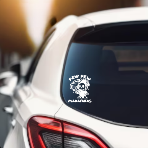 Funny Grim Reaper Decal – “Pew Pew Madafkas” Humor Sticker Car, Laptop, Tumbler
