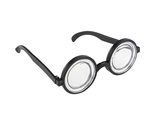Essential geek gear to make an ideal anti-fashion statement. Black plastic frames and clear toy slight magnified-style thick lenses are extremely sturdy, lightweight and nerdy.