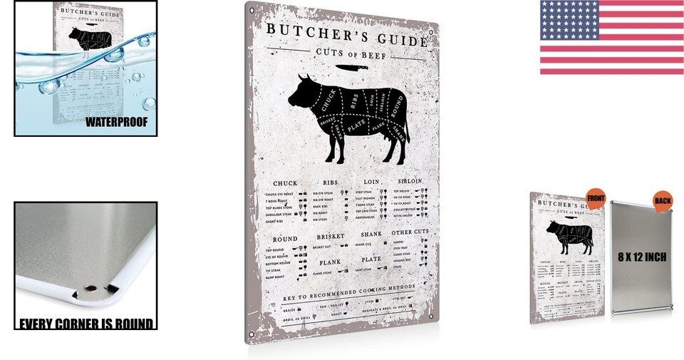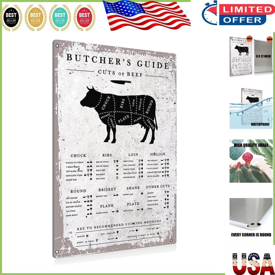 Order your Funny Vintage Butcher Cuts Metal Tin Sign today and bring laughter and charm to your home or office!