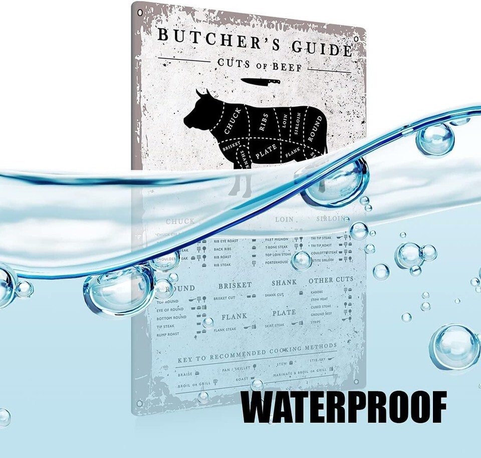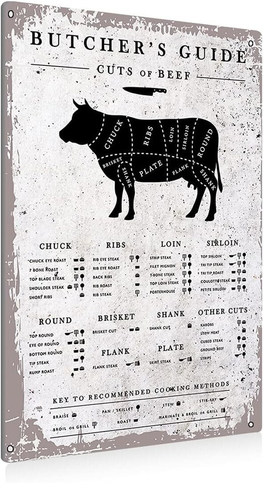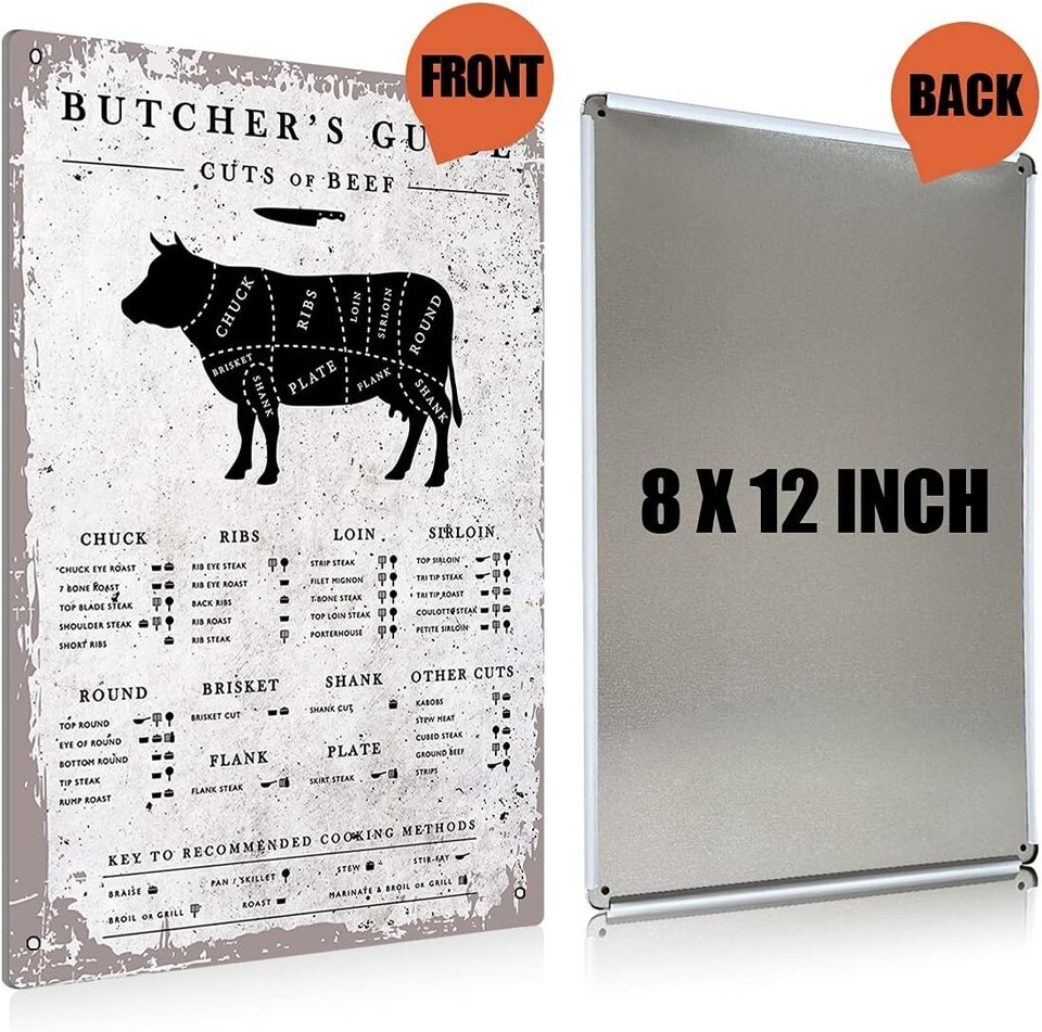 Funny Vintage Butcher Cuts Metal Tin Sign - Perfect Wall Art for Kitchens