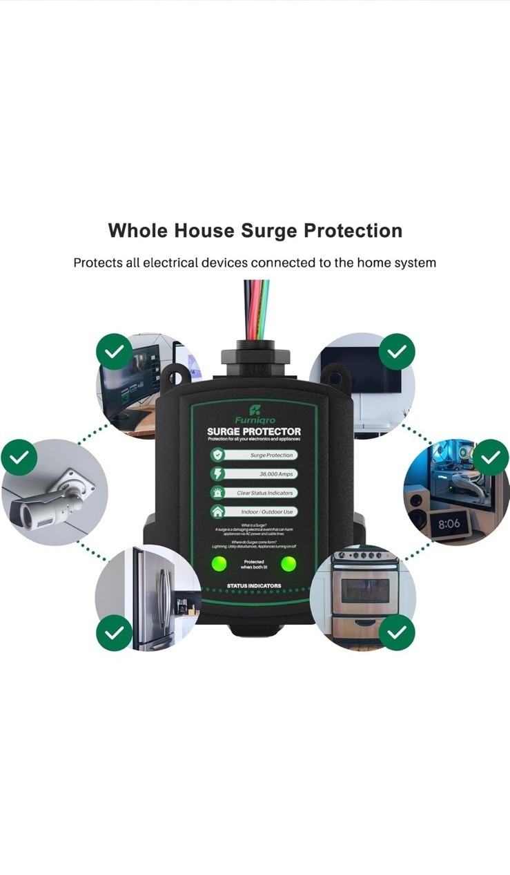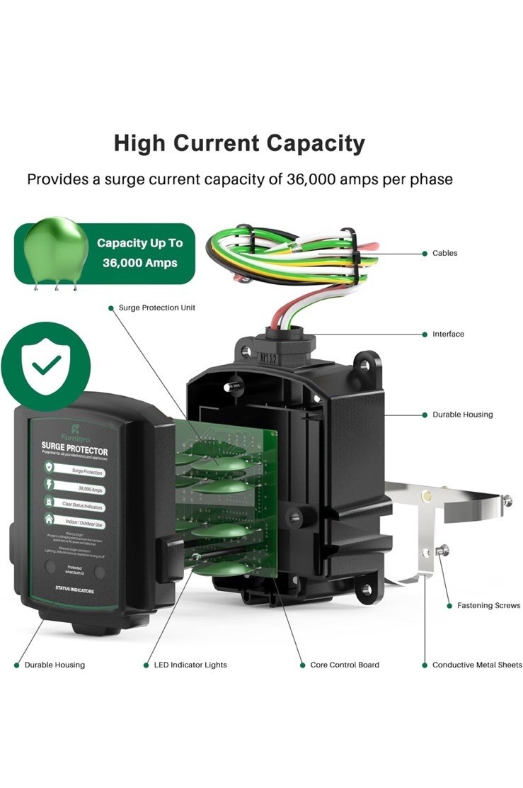 - Furniqro FHSPD36S Whole House Surge Protector for 36,000 Amps, Ultimate Surge...