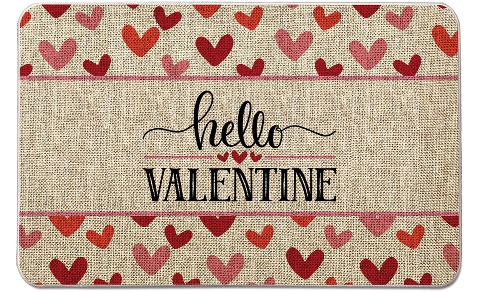Valentines Day Door Mat Rug Hello Valentine Love Heart Welcome Doormat Outdoor Indoor Farmhouse Entrance Rugs Anniversary Wedding Decor Home Kitchen Floor Front Door Mats 17 x 27 Inch