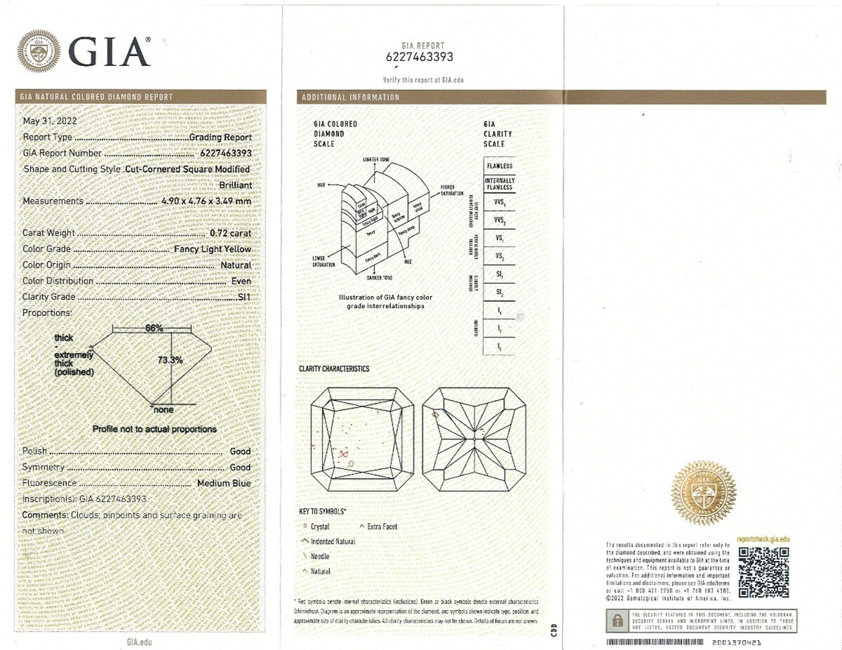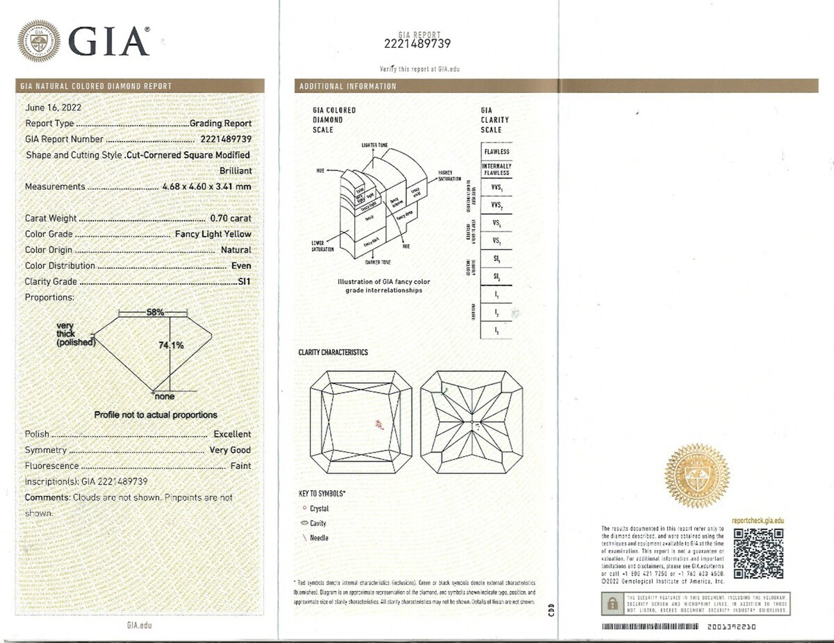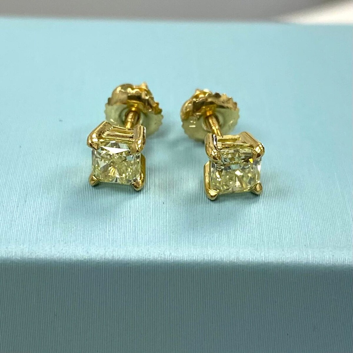 Aggiungi un tocco di eleganza al tuo ensemble con i nostri squisiti orecchini a perno di diamanti. Con due diamanti gialli chiari radiosi radiosi, ogni GIA certificato per la garanzia della qualita, queste straordinarie gemme sono saldamente tenute in un ambiente in oro giallo 18k con design a quattro punte. Con un peso totale di carati di 1,42 carati, questi orecchini sono l'epitome di raffinatezza e stile. Eleva qualsiasi look con la bellezza senza tempo di questi orecchini abbaglianti.