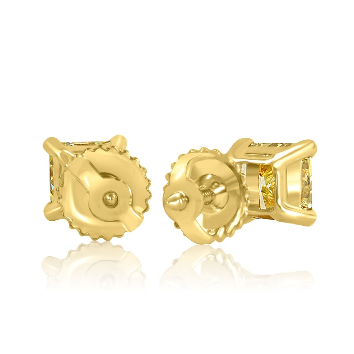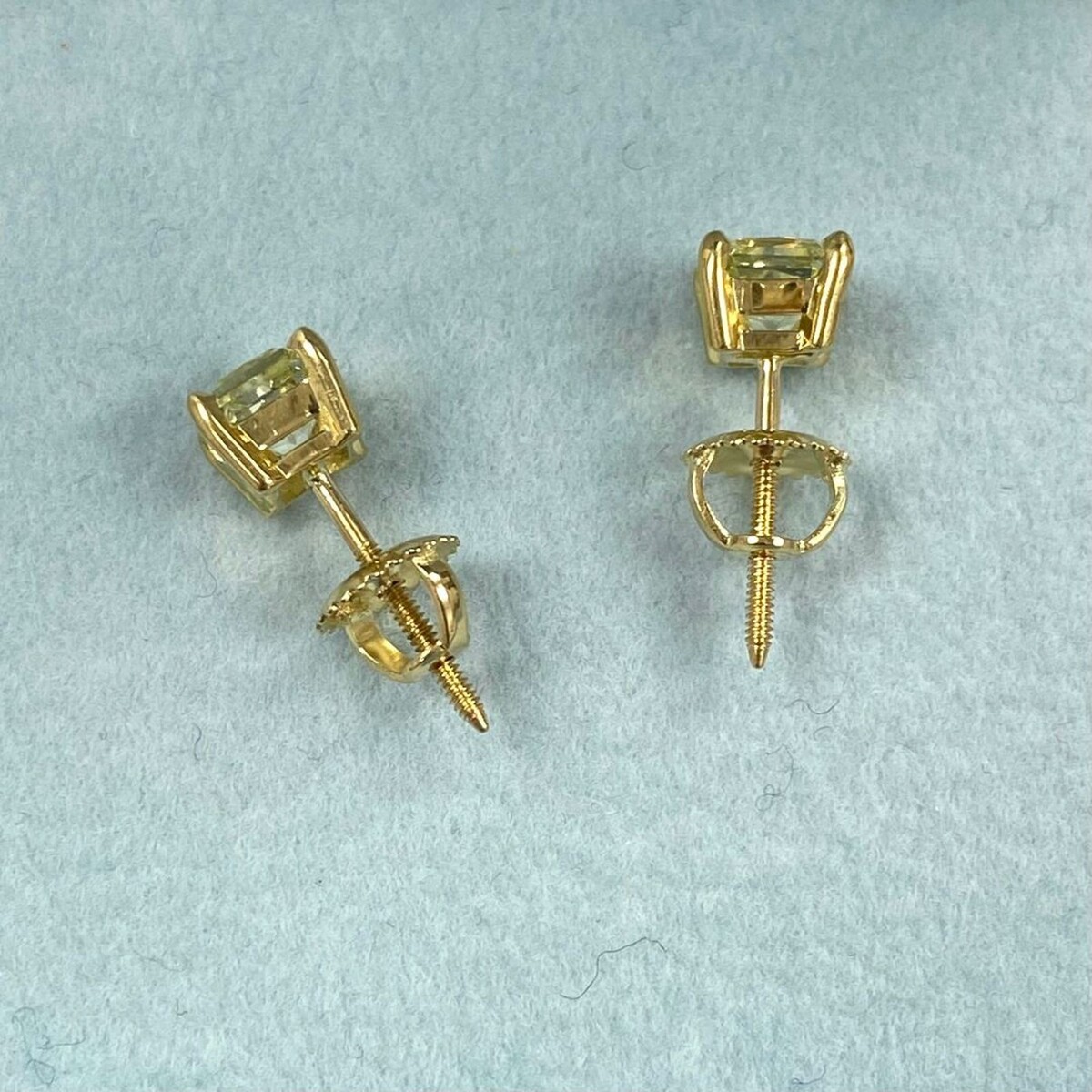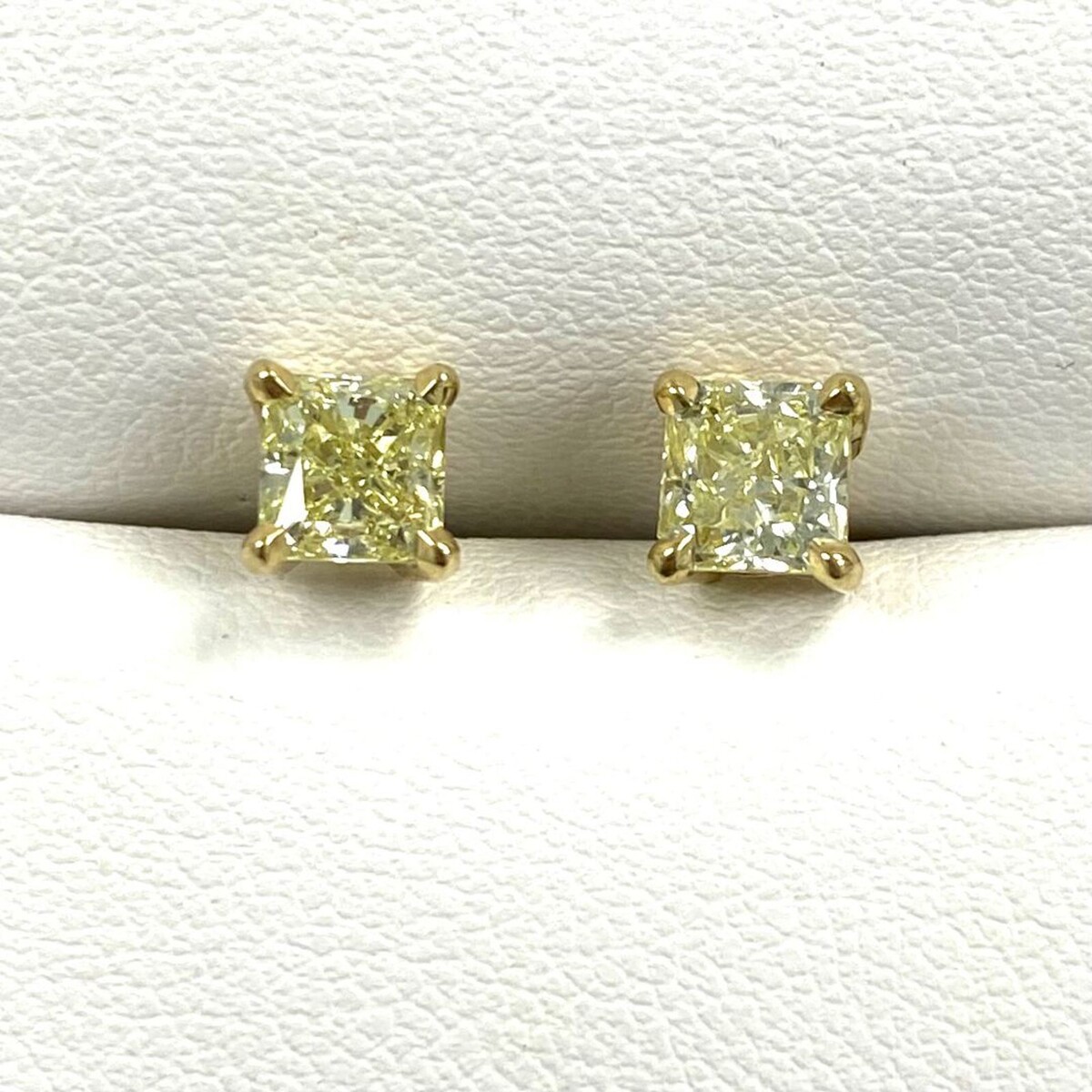 GIA 1.42 TCW Radiante Natural Fancy Fancy Giallo Orecchini di diamante Gold 18K
