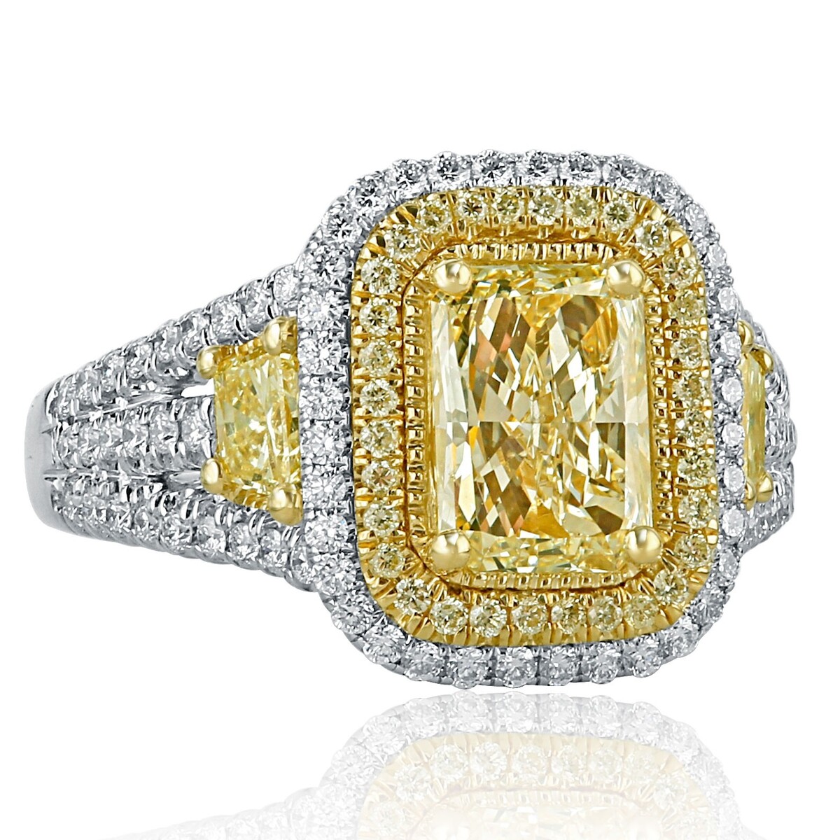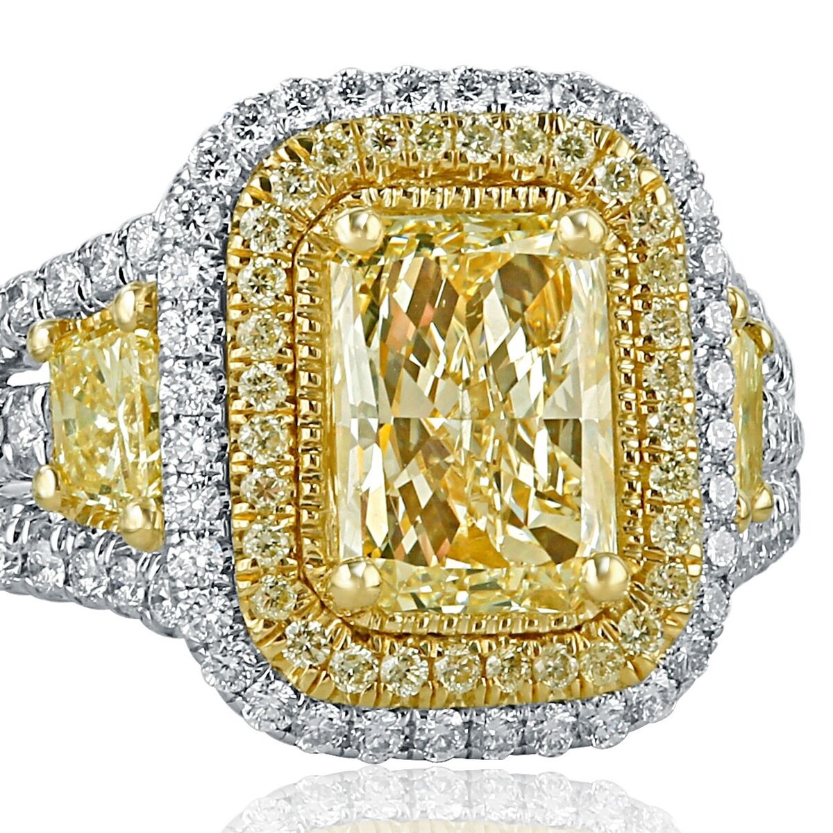 - GIA Certified 2.65 Ct Very Light Yellow Radiant Cut Diamond Ring 18k White Gold