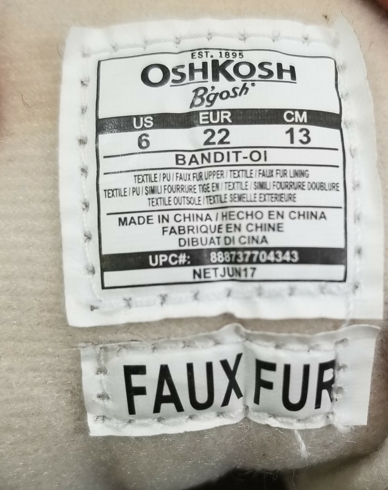 GN) OshKosh B’Gosh Bandit Duck Boots Sneaker Boys Size 6 Brown Black Faux Fur