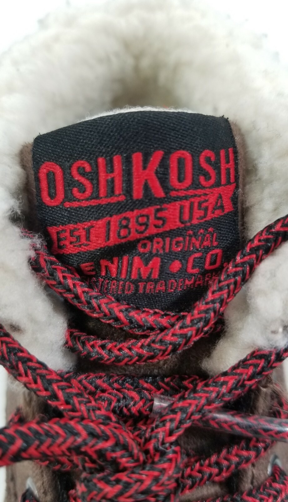 OshKosh B'Gosh Bandit Duck Boot Boys Size 6 Brown/Black 100% Textile Rubber sole Faux fur lining Thick athletic outsole Padded insole collar Synthetic/Fabric outsole Synthetic/Fabric upper Lace-up closure with metal eyelets Pull tab at heel UPC: 888737704343 Boots are in very good, very slightly used condition.