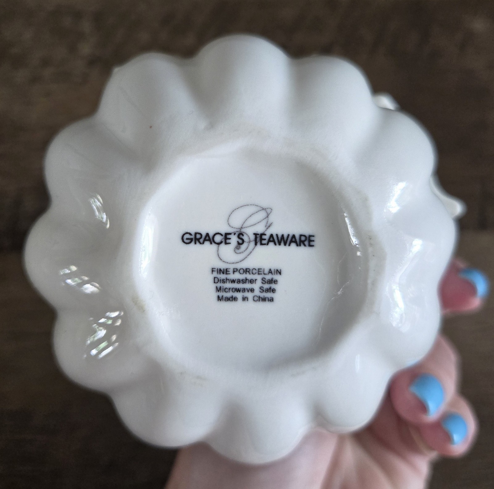 Beautiful Grace's Teaware Ivory Porcelain Creamer Pitcher Pumpkin/Gourd with Vines and Leaves. Great gift idea! Measurements: 4-3/4" x 3-1/2" x 4" Please view all my other items in my store and check back often, I would LOVE to keep you coming back for more. All my items are packaged carefully and shipped quickly including tracking information. All OF my items are from a smoke free/pet free environment. Please note I sell both new and preowned items. I strive to describe all my items accurately including flaws if any. Part of the description includes all the pictures. I appreciate any questions prior to bidding.