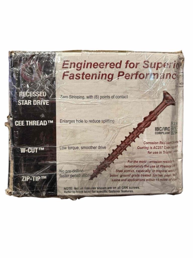 NEW IN OPEN/DISTRESSED FACTORY BOX 600 PIECES GRK FASTENERS R4 MULTI-PURPOSE SCREWS #12 5-5/8".