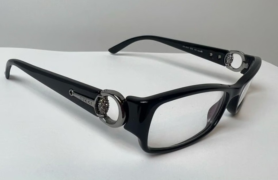 - GUCCI GG 3553 D28 140 Square Black Rhinestone Eyeglasses Italy Women’s Square