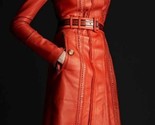 Gabardina de cuero para mujer ROJA piel de cordero genuina diseño elegante ab...