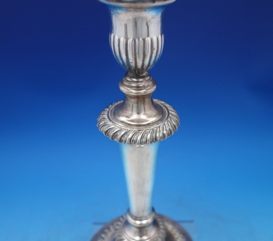 Lovely Gadroon silverplate candelabra (maker unknown). This piece measures 18" tall x 13". It is not monogrammed and is in good vintage condition as shown in the photos. Wonderful!