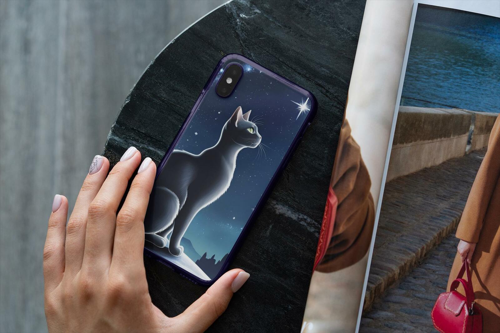 Introducing our stunning Protective Phone Case that combines style and functionality, ideal for those who love to express their personality while safeguarding their devices. This case features a beautifully detailed design of a serene cat gazing at the stars, perfect for cat lovers and stargazers alike. The vibrant colors and enchanting imagery bring a touch of magic to your phone, making it not just a protective accessory but also a statement piece.