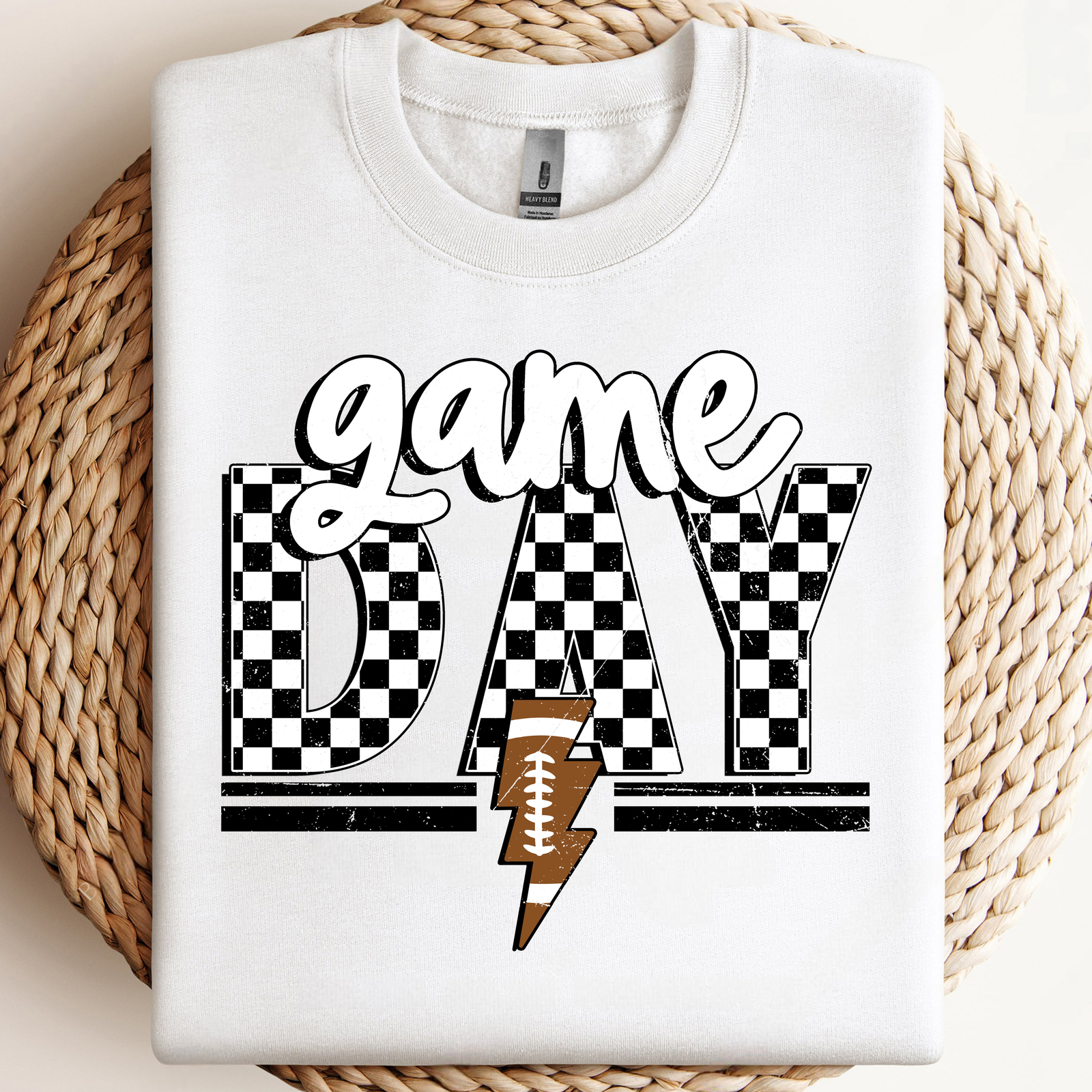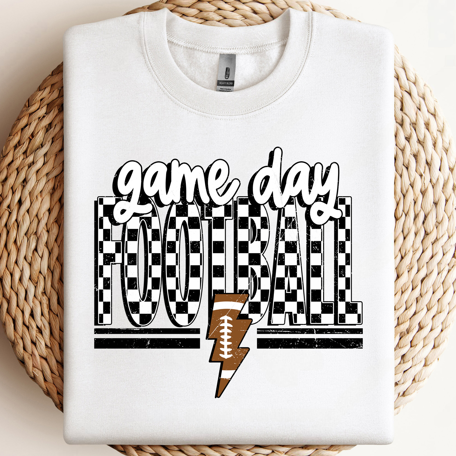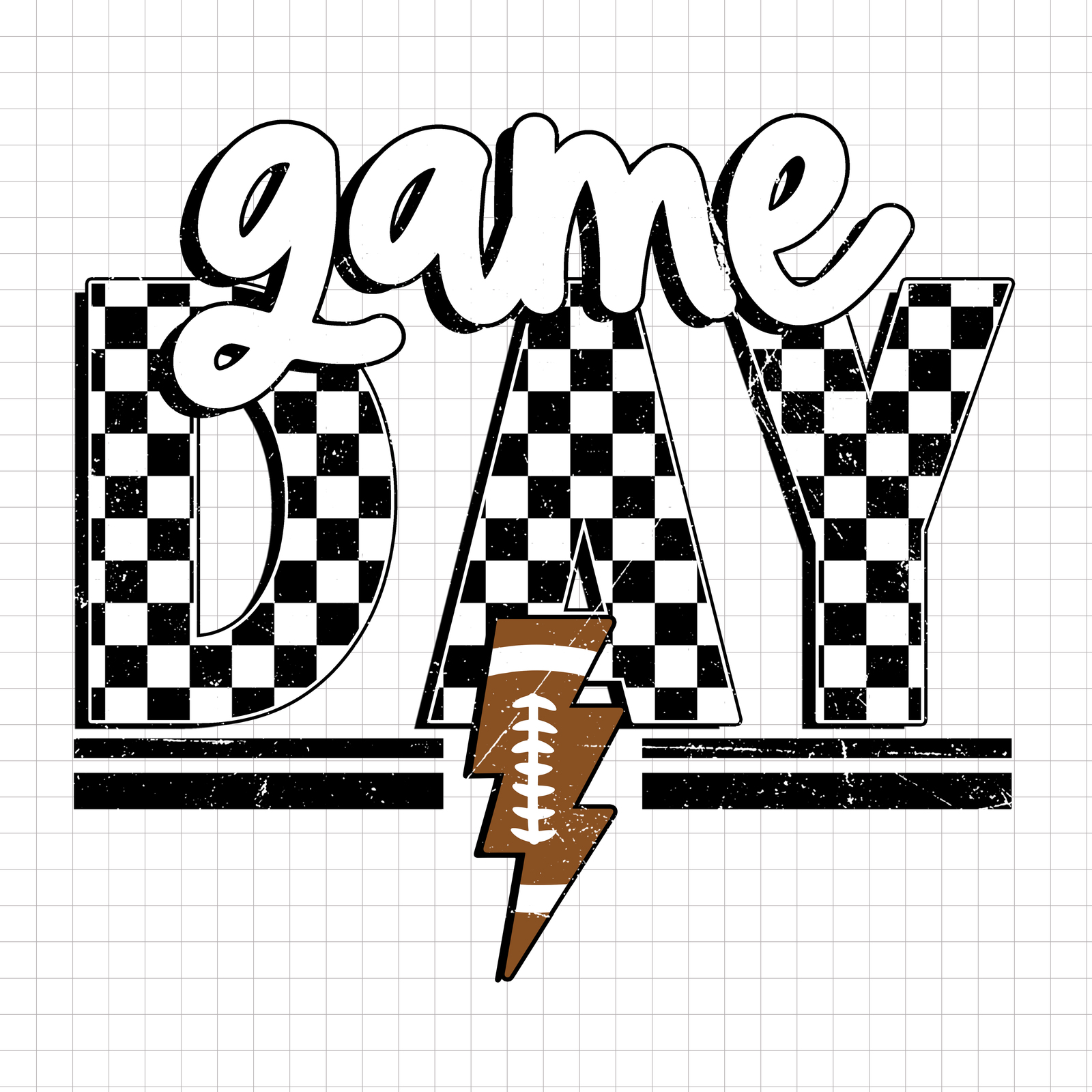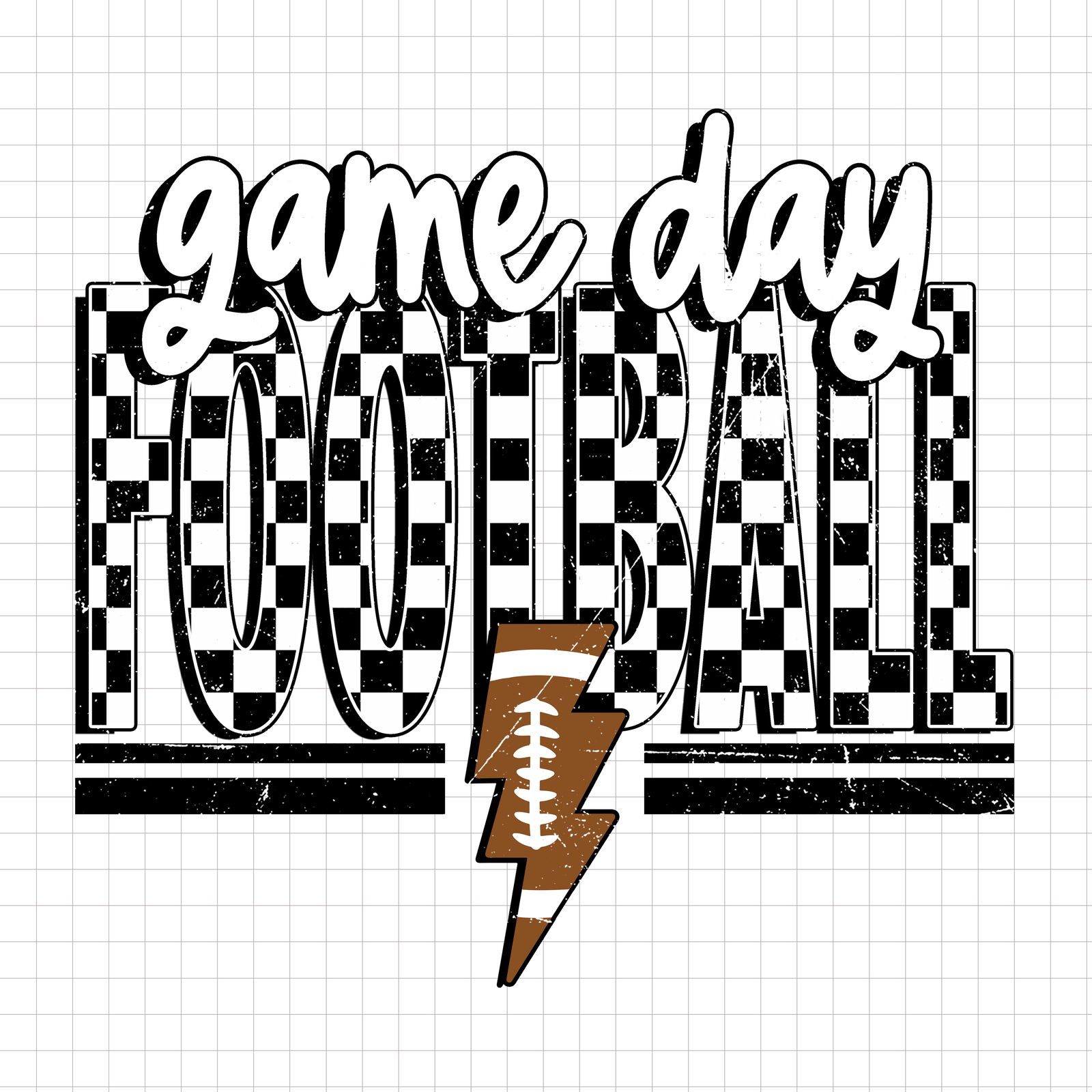 Game Day Football PNG, Retro Distressed Checkered Design, Football Mom Shirt PNG