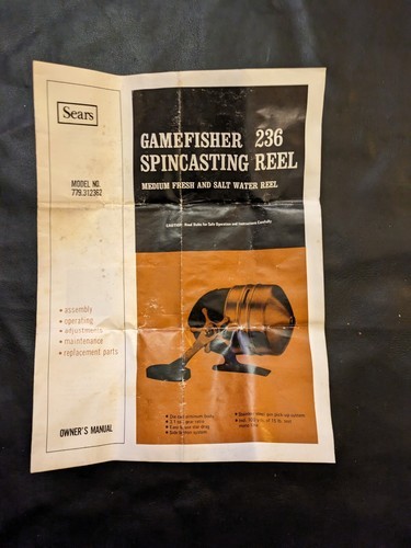 - Game Fisher 236 Spin Cast Reel Sears Roebuck Box Instructions Ted Williams Works