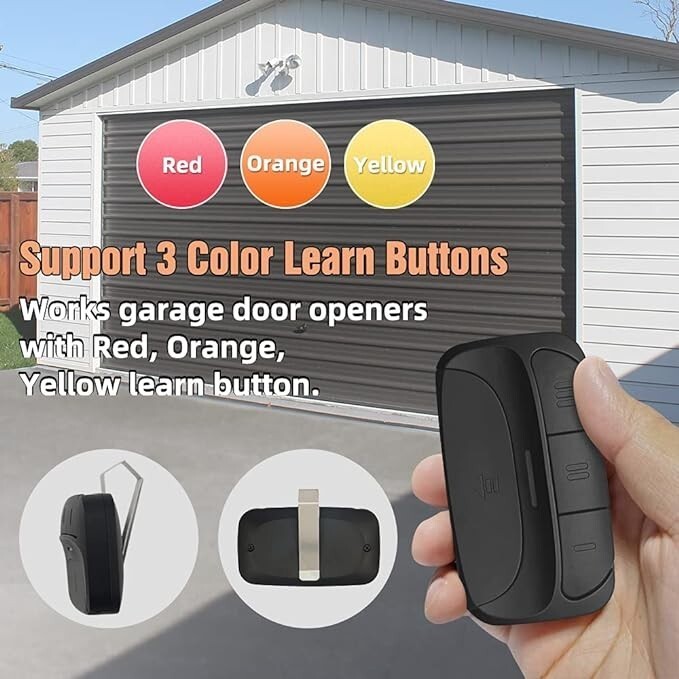 Support 3 garage door openers with Yellow/Red/Orange smart learn button on a remote. The remote 1st button for Red/Orange learn button's opener,the 2nd and 3rd button for the Yellow learn button's opener.But if you want change the set,please check below details or contact with seller.
