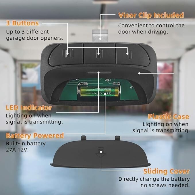 Compatible: Replaces remote control Liftmaster 370LM, 371LM, 372LM. Chamberlain 950D, 953D More (support 3 garage doors maximum at same time).
