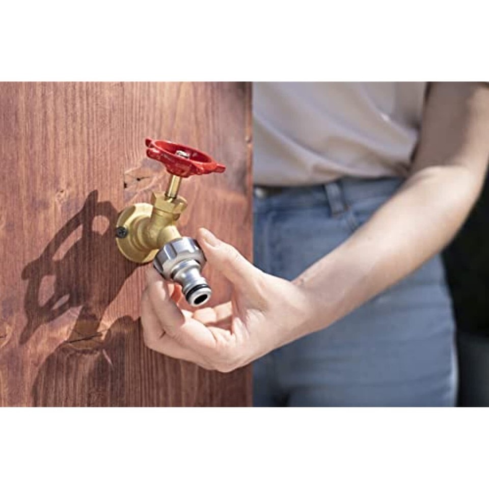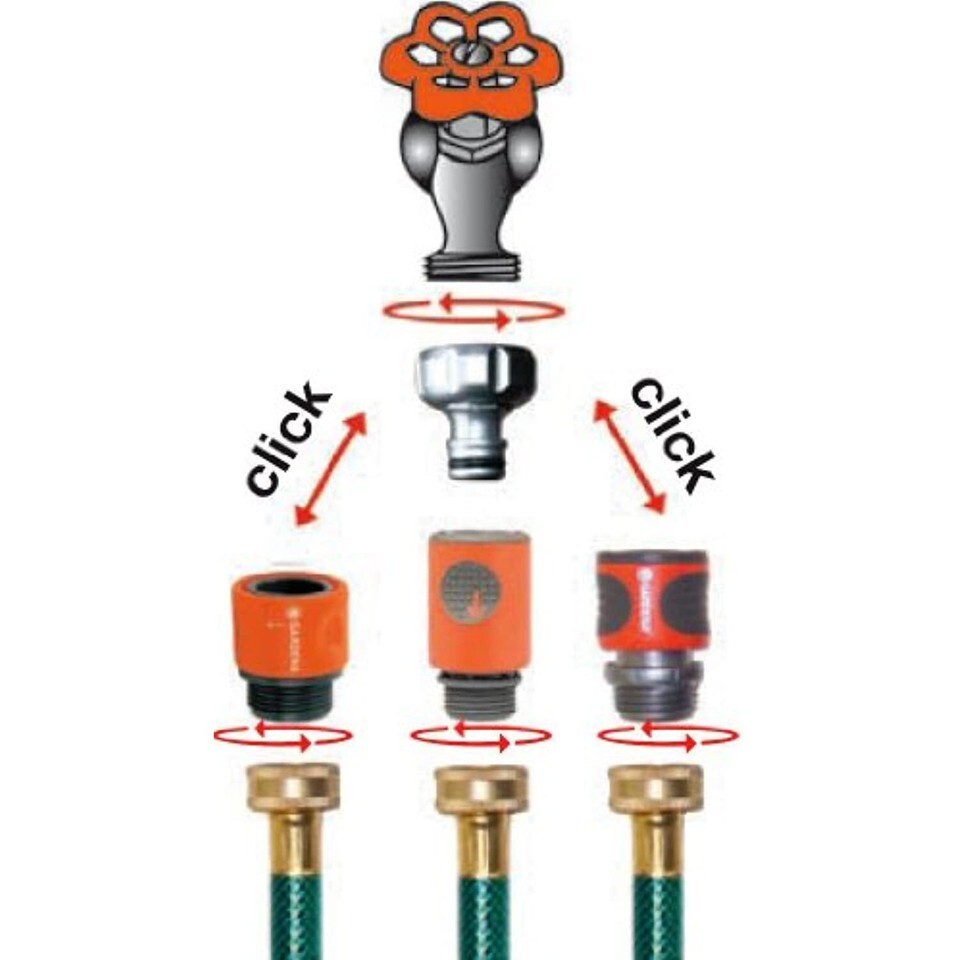 39004-G Features: -Connector allows connection to the tap. -Excellent addition to your lawn and garden. -Leak free and rust resistant. -Use for standard North American taps. -Click on convienence. -Constructed of a high quality, durable metal alloy. Product Type: -Kit. Dimensions: Overall Height - Top to Bottom: -8". Overall Width - Side to Side: -2". Overall Depth - Front to Back: -4". Overall Product Weight: -0.75 lbs.