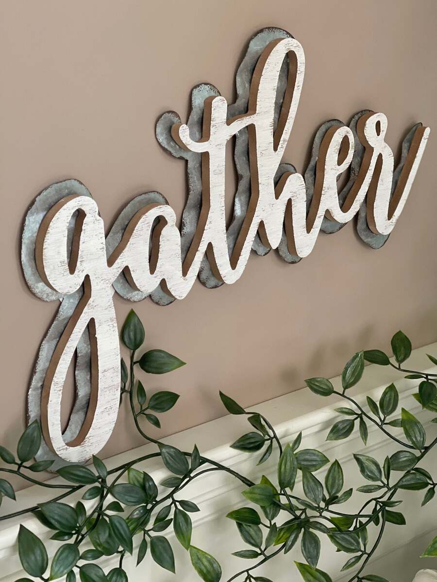 - Gather Wood and Metal Cutout Letter Signs Wall Decor