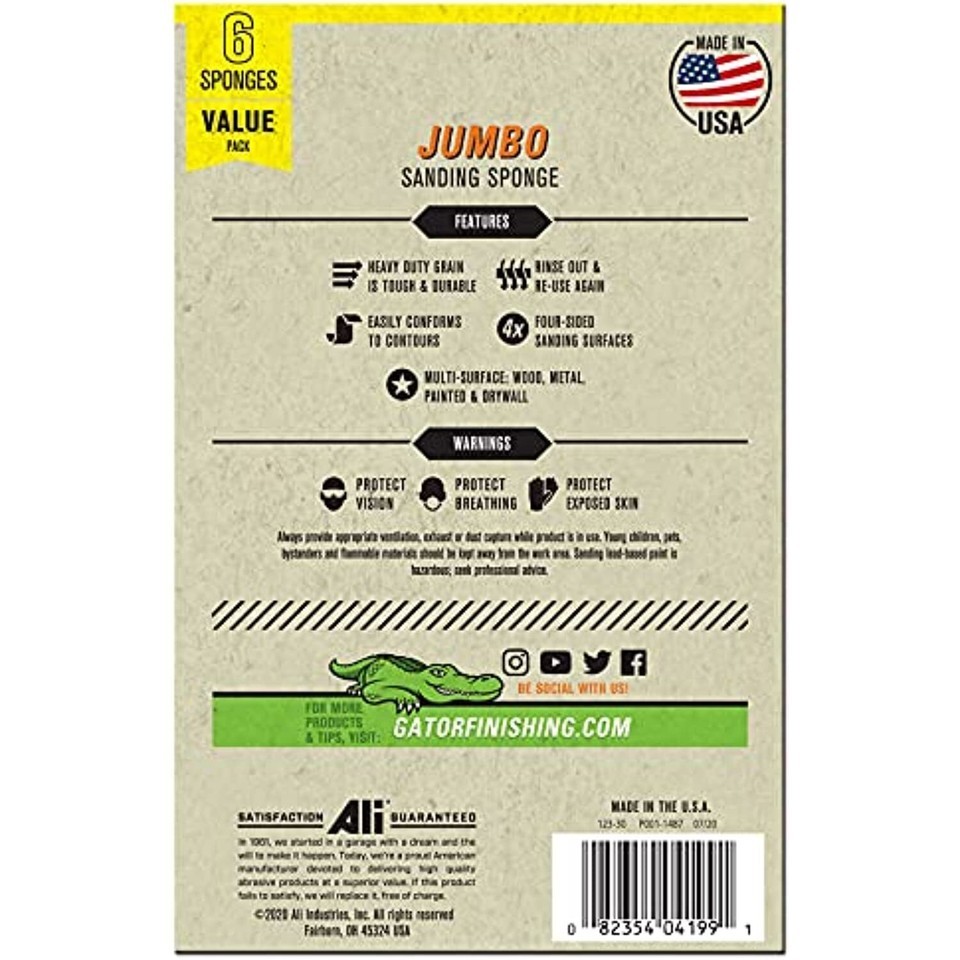 - Gator Finishing 4199 3" x 4" Multi-Surface Sanding Sponge, 3" x 4" x 1", Black