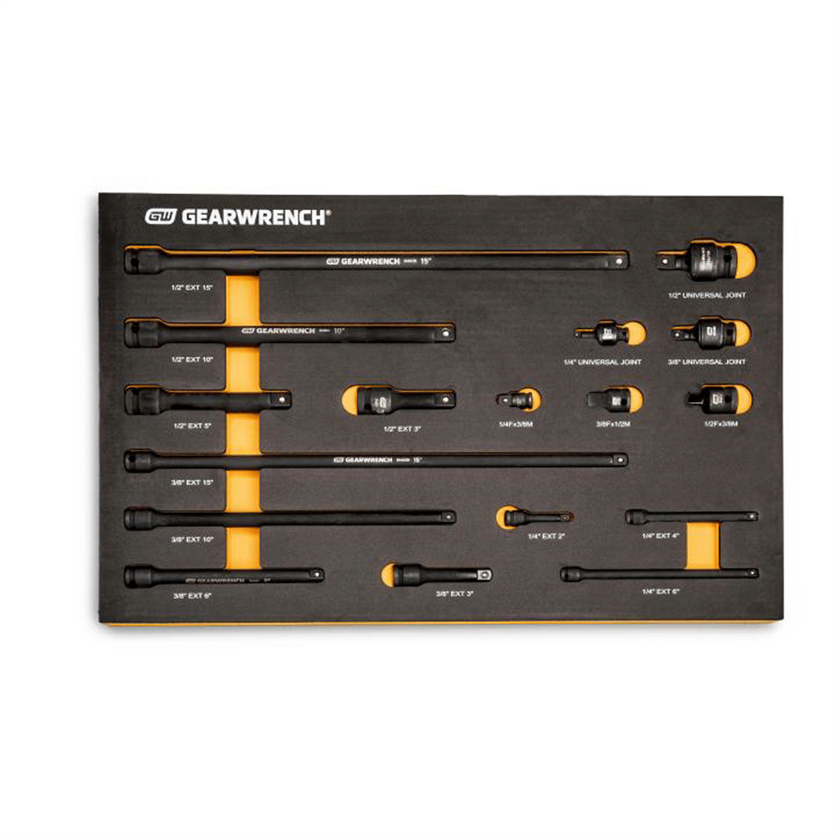 GearWrench 17 Piece 1/4 Inch, 3/8 Inch, 1/2 Inch Impact Drive Tool Accessories Set with Foam Storage Tray
