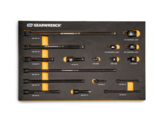 Ultimate assortment of 1/4", 3/8", 1/2" impact drive tools including increasing and redcusing adapters, universal joints and extension bars Chrome molybdenum alloy steel (Cr-Mo) for exceptional strength and durability Manganese phosphate finish to resist corrosion Incudes premium precut EVA foam tray with size markings for all tools for peak organization EVA Foam tray size: 21.5" x 13.46" x 2.0"