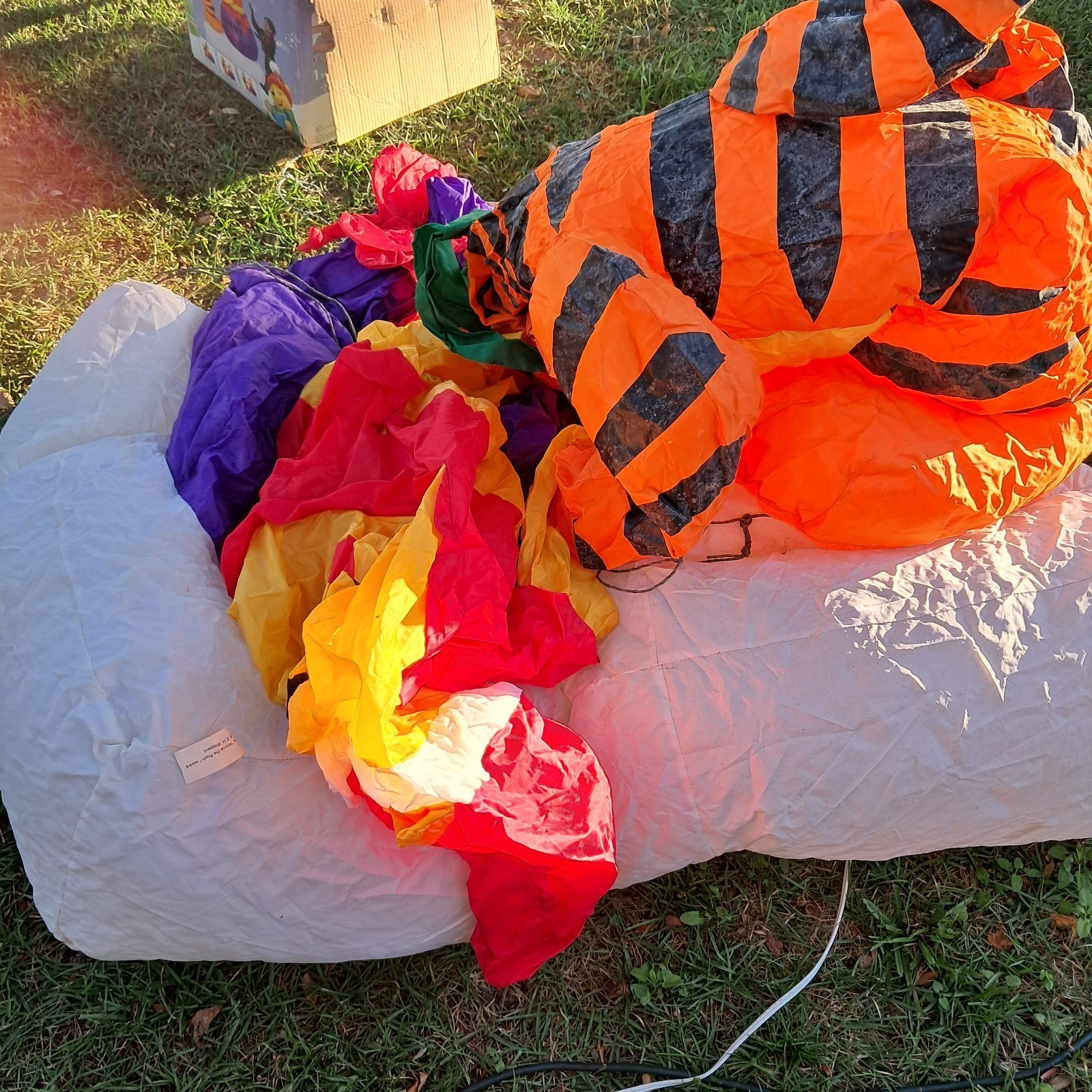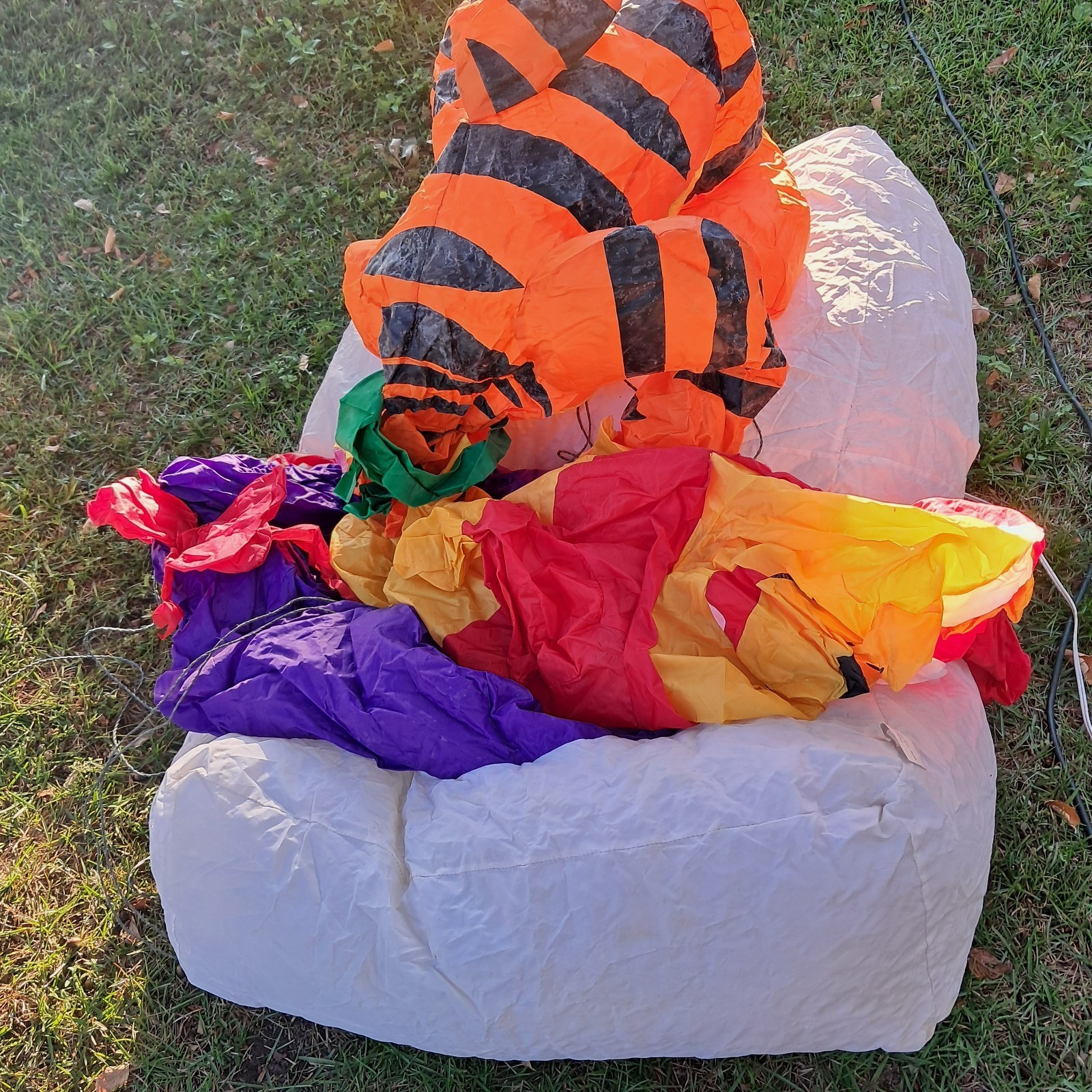Gemmy Disney Winnie the Pooh Tigger Christmas hunny pot Airblown Inflatable READ ***DOES NOT WORK PROPERLY. This item needs heavy repair to work properly. Selling as is/for parts or repair. *** Fan blows but it only partially inflates. Fabric has several tears/holes. Item smells mildewy and shows some mildew/(mold?) spots. Stains/wear/discoloration as shown. Does not include stakes. Box has wear as shown. ***DOES NOT WORK PROPERLY. This item needs heavy repair to work properly. Selling as is/for parts or repair. ***
