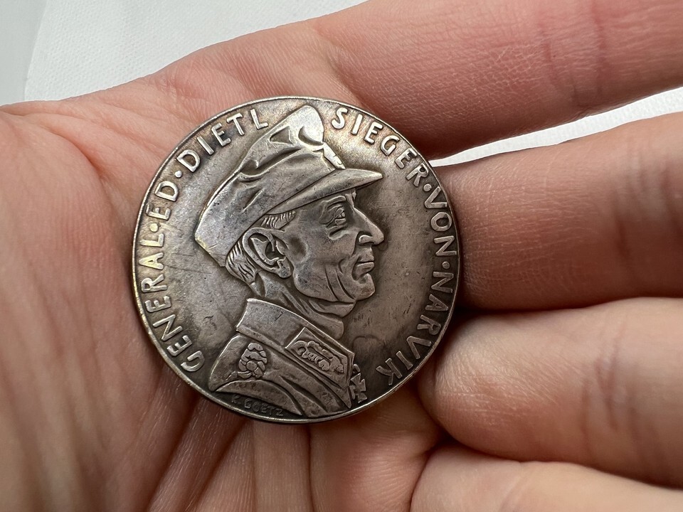 Esta medalla conmemorativa lleva la inscripcion "SIEGER VON NARVIK" (Ganador de Narvik), que simboliza las operaciones fundamentales durante la Segunda Guerra Mundial. En esta batalla, Dietl dirigio sus tropas contra las fuerzas aliadas con el objetivo de asegurar el estrategico puerto noruego de Narvik. Su exito en este compromiso no solo proporciono a la Alemania nazi una ventaja clave, sino que tambien elevo el estatus de Dietl dentro de la jerarquía militar alemana.