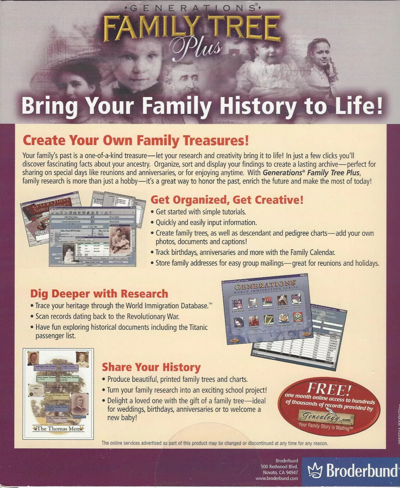 - Generations, "Family Tree Plus"_Geneology Software_BRODERBUND 2002