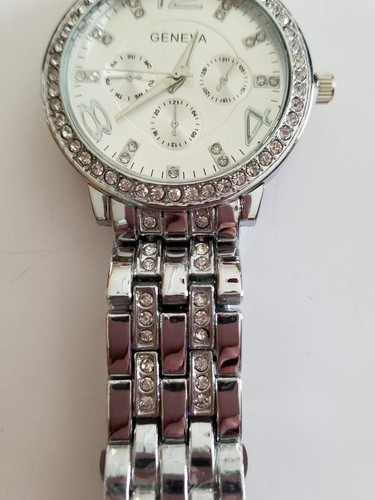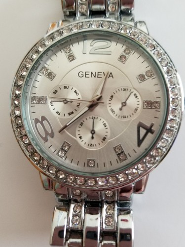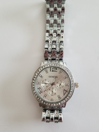 Geneva Quality WRISTWATCH SILVERTONE Metal Linked Closed Band Chronograph Look Water Resistant This watch is new ~ never worn Please view photos for a good DESCRIPTION of this item Thank you!