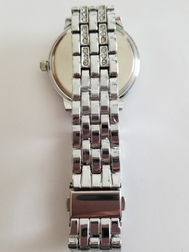 Primary image for Geneva Chronograph LOOK Watch With Crystals..SILVERTONE Metal Link