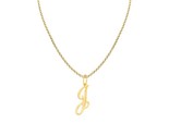 - Genuine 14K Yellow Gold 0.78" Fancy Cursive Letter Initial J Necklace 16" to 22"